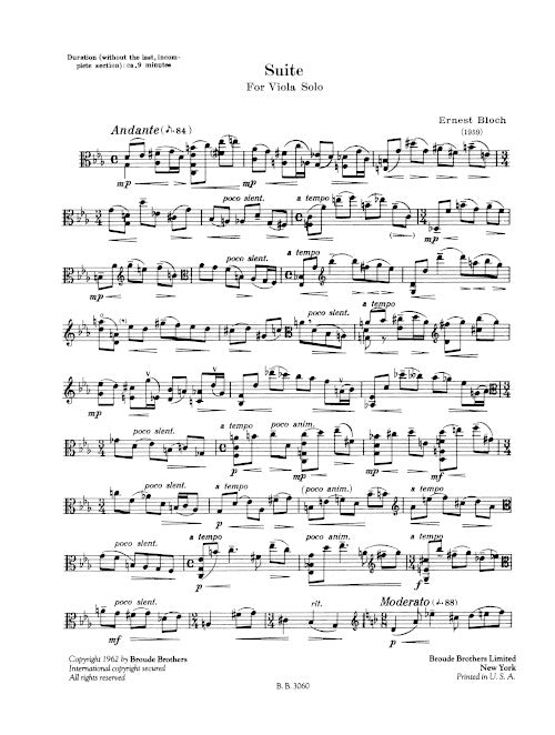 The work ends during the final movement, unfinished by Bloch at his death in 1959.