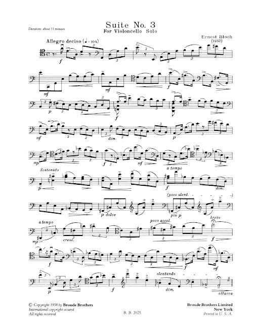 The Third Suite is the most expansive and philosophically weighty of the composer's set of cello suites. It feels more rhapsodic, weaving long‑breathed melodies with deeply resonant double‑stops and rich tonal exploration. The work’s expressive gravity, combined with its architectural coherence, gives it an almost epic character—often regarded as the spiritual culmination of the trilogy. [AI-generated]