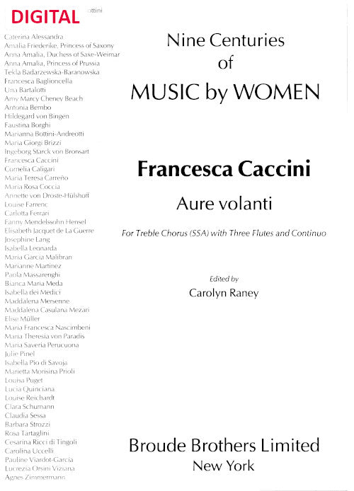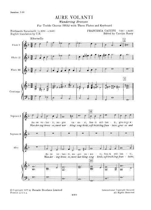 Francesca Caccini, the eldest daughter of Giulio Caccini, concertized widely and created musical entertainments for the Medici court. Aure volanti is from her 1625 opera La Liberazione di Ruggerio dall' isola d'Alcina with librettist Fernando Saracinelli.
