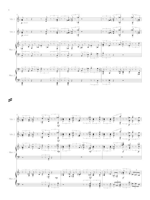 8 performances scores for vibraphone doubling crotales, vibraphone, 2 marimbas, and vocal quartet (SSAA, SATB, or TTBB)