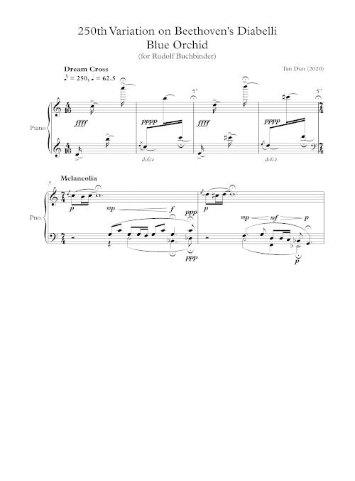 For Rudolf Buchbinder's recording of Beethoven's thirty-three variations on a simple waltz by Anton Diabelli (the 'Diabelli Variations' he composed between 1819 and 1823), Buchbinder added a few by Beethoven's contemporaries to the album. Notably, he also commissioned eleven more 21st-century composers to write variations for the recording, including Tan Dun's contemplative Blue Orchid.